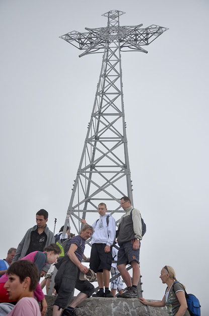 W sumie nie mieliśmy jakiegoś konkretnego planu jadąc do Zakopanego. Jak przyjechaliśmy w sobotę, to stwierdziliśmy, że może pojedziemy kolejką na Kasprowy Wierch. Po znalezieniu miejsca parkingowego, udaliśmy się piechotą w kierunku Kuźnic. Tam - kolejka do kasy, która nas przeraziła... Jakieś 3 lub 4 godziny czekania. Bez sensu. Aż żałuję że nie zrobiłam zdjęcia. Po chwili namysłu, poszliśmy dalej przed siebie, choć wciąż bez celu. Doszliśmy na polanę Kalatówki. Tam zrobiliśmy sobie małą przerwę na posiłek. Tam też zorientowaliśmy się, że nie wzięłam mocowania do statywu... Został w domu. Wiedziałam, że czegoś zapomne :) Kurcze :) Więc nici ze wspólnych zdjęć, a panoramy jakoś musiałam próbować robić "z ręki". No nic. Poszliśmy dalej, za drogowskazami na Halę Kondratową. Tomek już wtedy chciał się wrócić w stronę samochodu, ale mnie kusiła tabliczka z napisem "Giewont" :) I chociaż pogoda nie sprzyjała wędrówkom, powiedziałam - chodźmy. Po drodze wiele razy slyszałam "czekaj na mnie", "koniec", "wystarczy", "wracamy już", "wiesz jak daleko mamy samochód?" :) Dobrze, że jestem uparta i jakoś przekonałam męża, że jak już jesteśmy tak daleko, to musimy dojść do końca :) Najgorsze było tylko to, że brakło nam jedzenia i picia. Dopiero jak dotarliśmy na sam szczyt zrozumiałam zdziwioną minę chłopca, który już wracał z góry, a my zapytaliśmy go, czy jest tam jakiś sklep na tym Giewoncie :):):) Sklepu oczywiście nie było, były za to wyślizgane kamienie i łańcuchy, którymi trzeba było się wspiąć na górę. Wierzchołek nie jest zbyt obszerny, więc należało bardzo uważać, by kogoś nie trącić, lub żeby ktoś nas nie popchnął. Pod nami zionęła ogromna przepaść. Może to i dobrze, że mgła była tak gęsta, że nic nie było widać. Bo pewnie patrząc w dół, nie zeszła bym stamtąd :) Z jednej strony czułam niedosyt, że ominęły nas piękne widoki, ale z drugiej strony satysfakcję, że jakoś udało nam się tam dojść :) Tym bardziej, że nigdy wcześniej nie chodziliśmy po górach :) Ale Giewont zaliczony :) Jak już wracaliśmy, to sama miałam dość :) Zarzekaliśmy się, że pierwszy i ostatni raz takie coś, następna rocznica ślubu to będzie jakieś SPA i masaże :P Marzyliśmy już tylko o tym, by znaleźć się w hotelu. Bardzo polecam "Szklane Domy", bo jak już otworzyliśmy drzwi i zobaczyliśmy pokój, to byliśmy bardzo zadowoleni. Odpoczęliśmy chwilę i poszliśmy wieczorem na Krupówki na kolację. Dostałam śliczny prezent od męża :) Dziękuję dziękuję dziękuję! :*